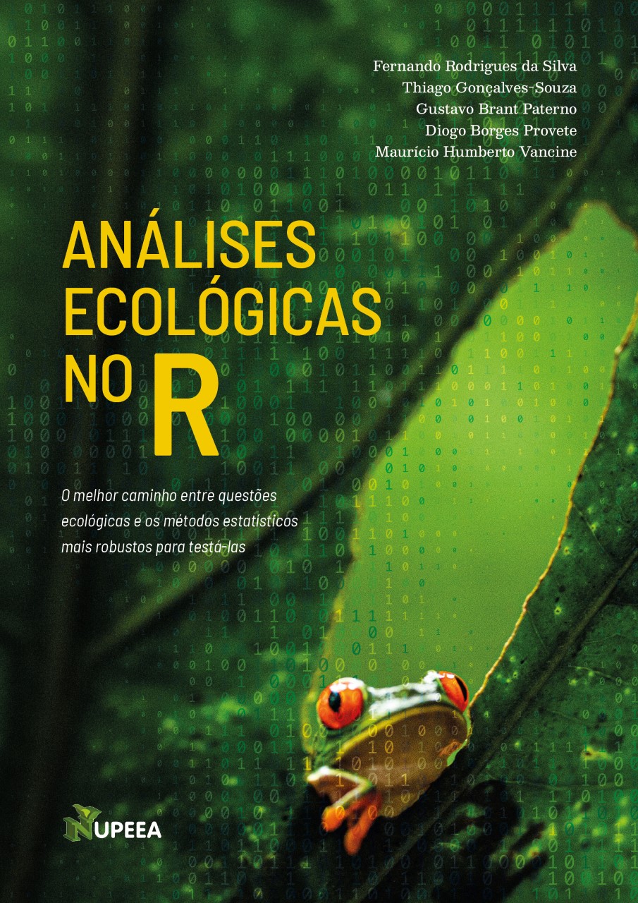 15 capítulos: linguagem R, tidyverse, perguntas em ecologia, análises univariadas, multivariadas e geoespaciais